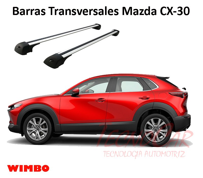 Las barras transversales de techo Wimbo para Mazda CX-30 son una solución práctica y resistente para aumentar la capacidad de carga de tu vehículo, ideales para viajes y uso diario.
