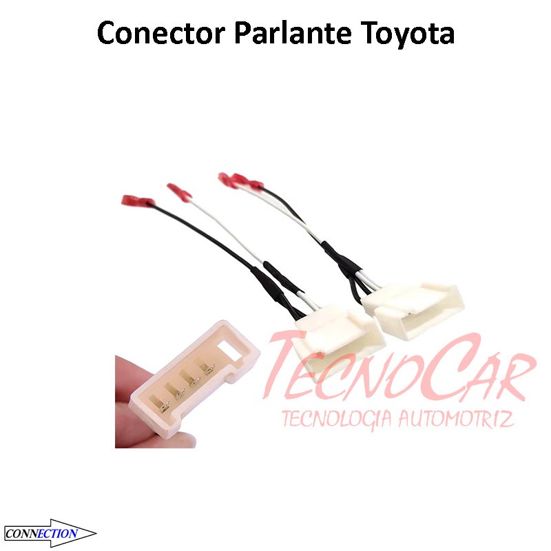 El conector de parlante Connection para vehículos Toyota está diseñado para facilitar la instalación de parlantes en el tablero, permitiendo una conexión directa sin necesidad de cortar o modificar el cableado original del vehículo.