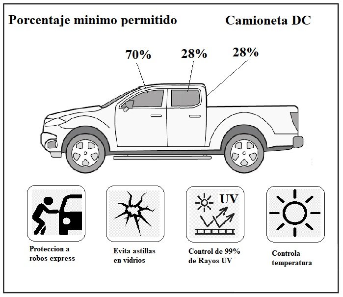 lamina seguridad camioneta, polarizado seguridad auto, lamina anti impacto vehiculo, lamina uv camioneta, polarizado doble cabina, seguridad vidrios auto
