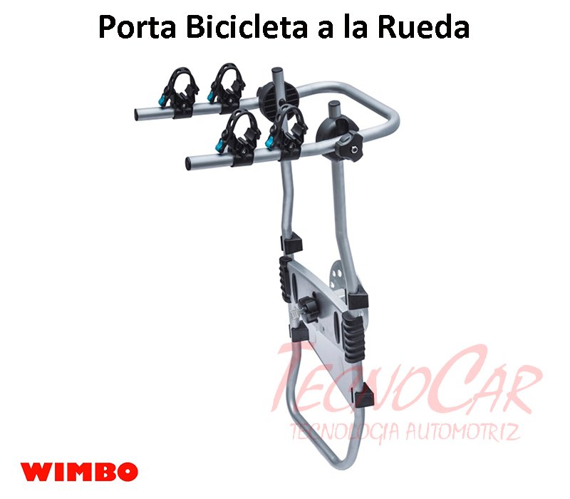 Porta bicicletas Wimbo para rueda de repuesto, capacidad para 2 bicicletas, fácil instalación y transporte seguro.