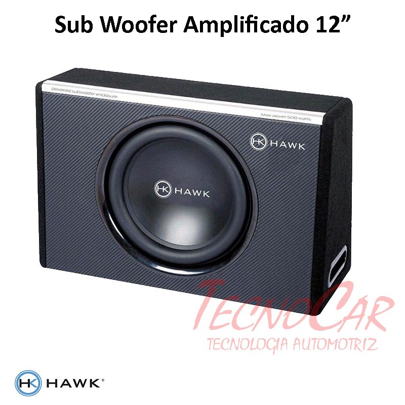 Subwoofer HAWK, subwoofer activo 12 pulgadas, subwoofer bajo asiento, subwoofer caja plana, subwoofer amplificado auto, car audio compacto